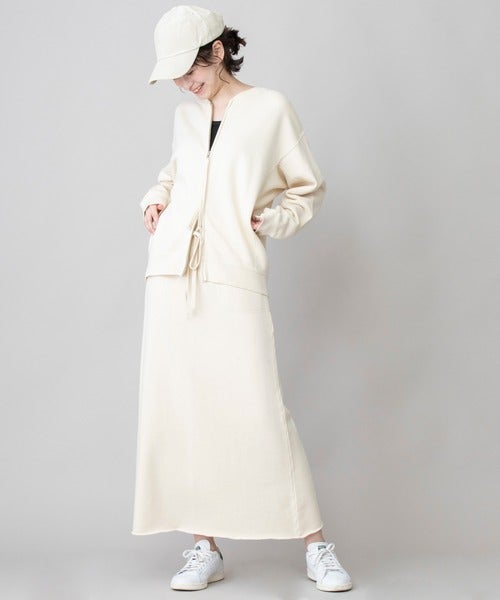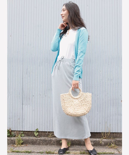 コットン素材のスウェットマキシスカートはすっきりとしたラインが魅力的な大人の1枚。