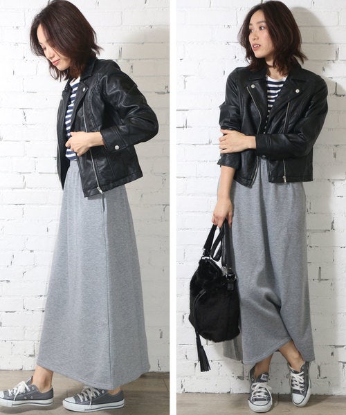 スウェットスカート×ライダースコーデ