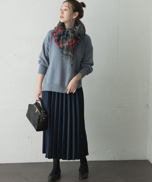 トップスや小物などは極力シンプルなものを合わせ、スカートメインに着こなすとバランス良くまとまります。
