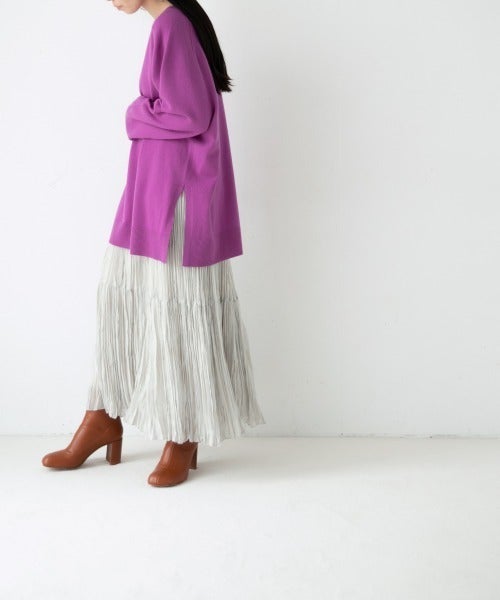 繊細なプリーツ加工で仕上げたティアードスカート。存在感のある一枚は、カラーニットとも相性◎ワンピースとのレイヤードもおすすめですよ。