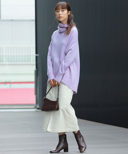 すっきりとしたシルエットなので、ゆったりニットと合わせてもメリハリを叶えてくれます。