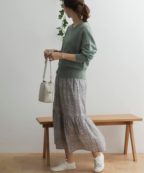 歩くたびに揺れるシルエットが可愛いティアードスカート。トレンドムードを引き立てるオリーブカラーも魅力的です。