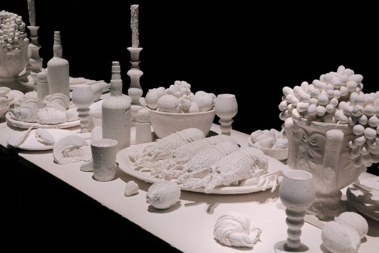▲最後の晩餐 (部分) 2014 塩 H72×W900×D122cm 撮影:Kei Miyajima ©Ken + Julia Yonetani Courtesy of the Artists and Mizuma Art Gallery