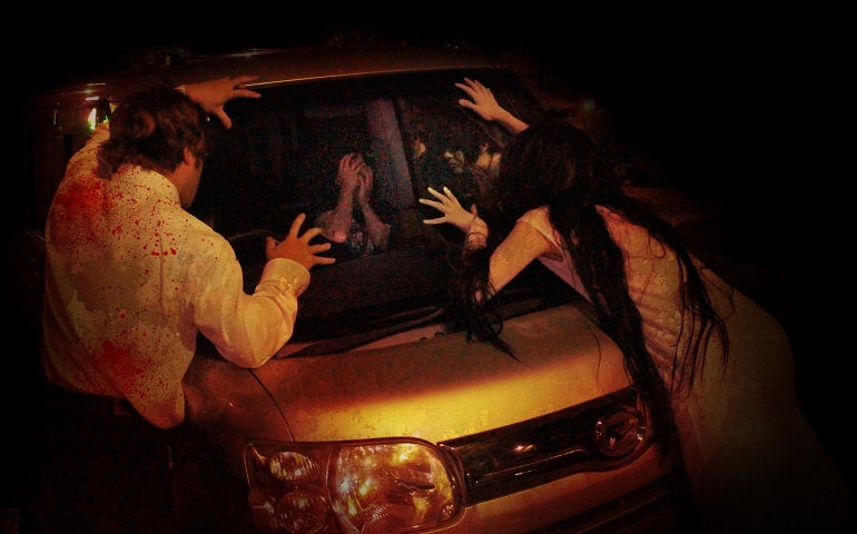 最大の特徴は、車の中で3密を回避しながらホラー体験を楽しめること。会場に設置された車に乗って体験するため、車や免許を持っていなくても大丈夫だ。