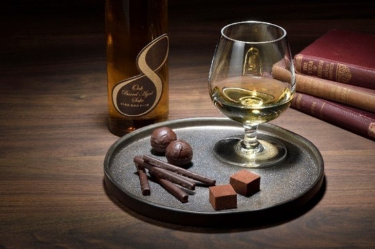 洋酒を思わせるような「芳しい木の香り」と日本酒の「ふくよかな甘み」が相まった、まろやかで奥深い芳醇な味わいを実現。ひとくち含むとオーク樽ならではの華やかで芳しい香りが口のなかいっぱいに広がる。