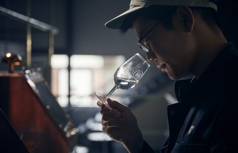 標高が高く、山が磨いた美しい水があり、年間の気温の寒暖差が大きくメリハリが効いた四季がある土地は、ウイスキー造りに最適。そして、森の中に蒸溜所があるため、空気が非常に綺麗で霧も多い立地。樽の中のウイスキーは、呼吸をするように空気や水蒸気を取り込みながら、熟成を重ねていくという。