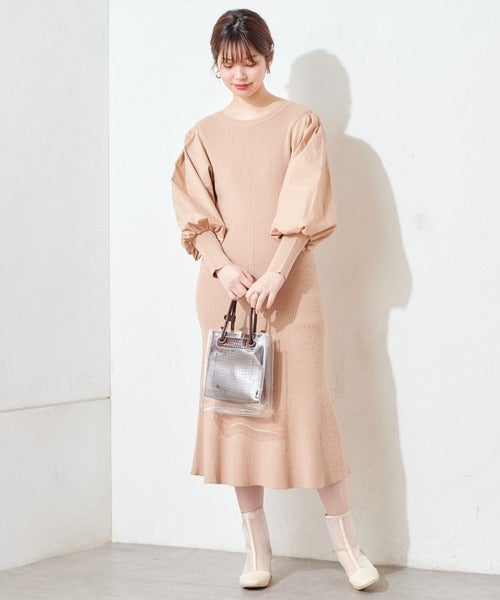 今、異素材切り替えデザインのワンピースがたくさん出ています。ぽわんとした袖に切り替えられたワンピースは、レトロな雰囲気でとっても可愛いですね。