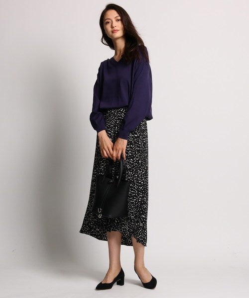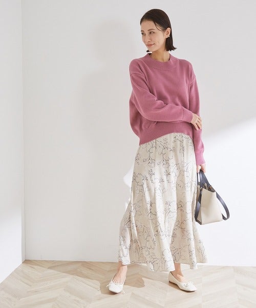 春コーデのマストアイテム、花柄スカート。とくにきれい色のニットと合わせた時は季節感満点でパッと目を惹く着こなしになりますね。