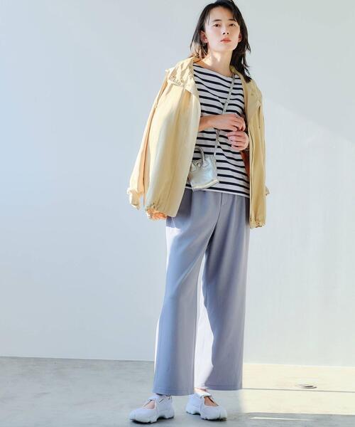 さわやかに見えるブルーのパンツと合わせることで、季節感を意識しています。