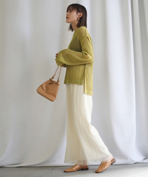 スカート見えするクリンクルシフォンリラックスパンツ。