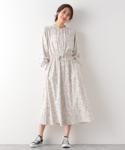 線描きの花柄ワンピースは、華やかさだけでなく上品さも感じられるアイテムです。