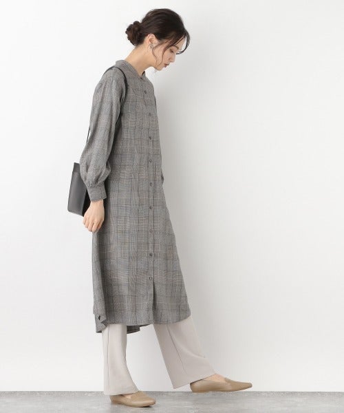 パンツ×チェックワンピースコーデ
