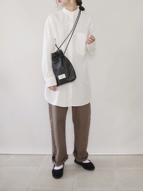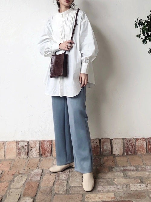 ラフになりすぎないバンドカラーなので、大人ならではのトレンドコーデが楽しめます。