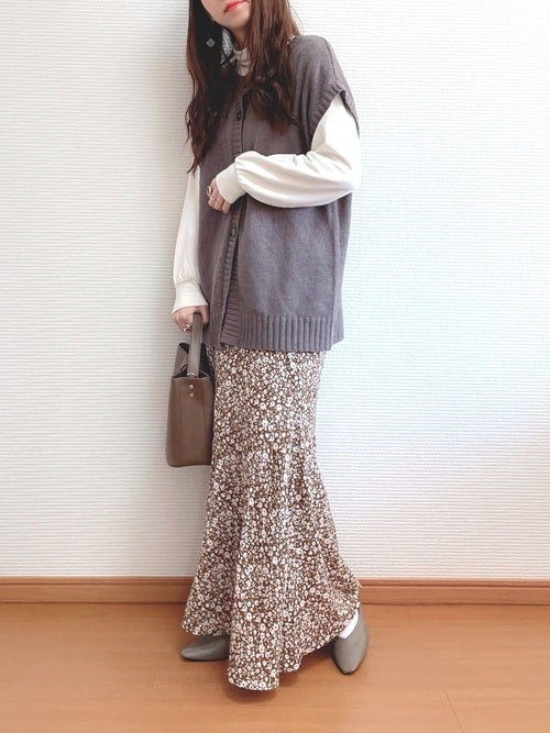 クラシックで大人可愛いコーディネートを作ってくれる、しまむらの小花柄スカート。
