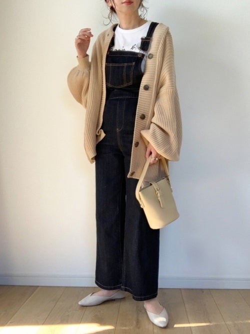 オーバーサイズのカーディガンをセレクトして、ゆったりとしたシルエットに仕上げるのが今っぽいですね。