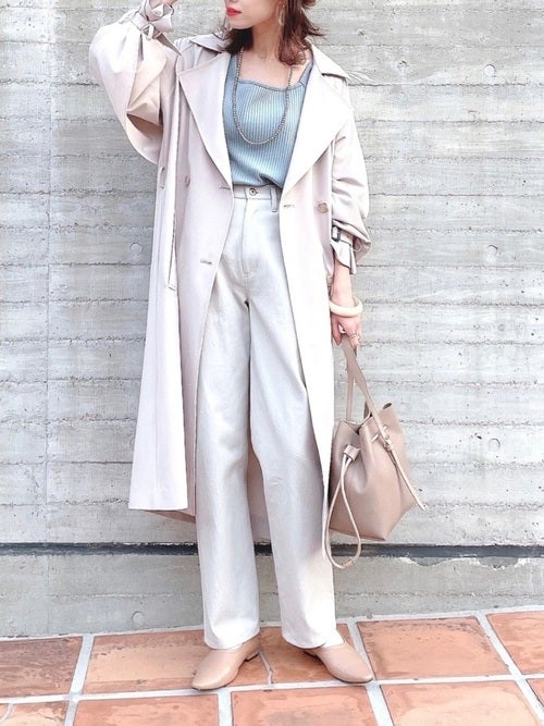 春の大人女性の定番アウターでもあるトレンチコートは、オーバーサイズなアイテムが顔タイプ・ソフトエレガントの骨格ナチュラルさん向き。