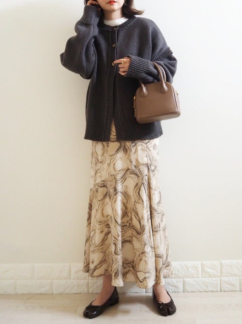 独特のニュアンスのあるマーブル柄スカートは、2021年冬のネクストトレンドとして注目を集めそうなレディースアイテム。