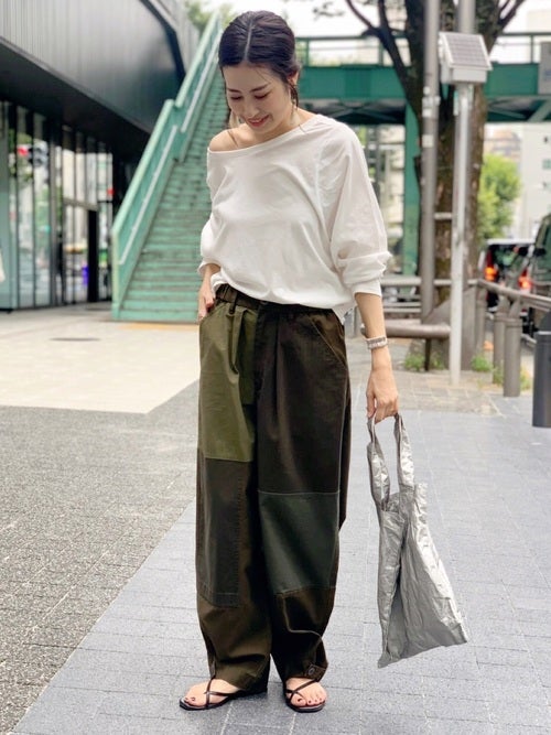 2021年夏なら、ロゴ入りトート+トングサンダルで、骨格ナチュラルのソフトエレガントさんらしい、程よく肩の力の抜けた着こなしに仕上げてみてはいかがでしょうか。