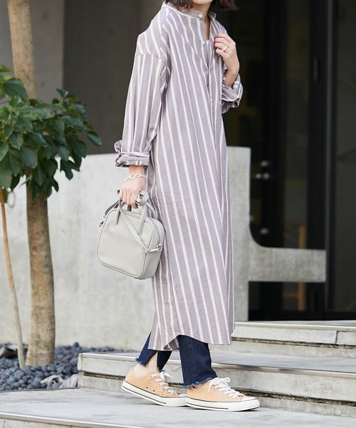 春らしいカラーリングのOXシャツワンピースは、クリーンな印象で着こなせる1枚。