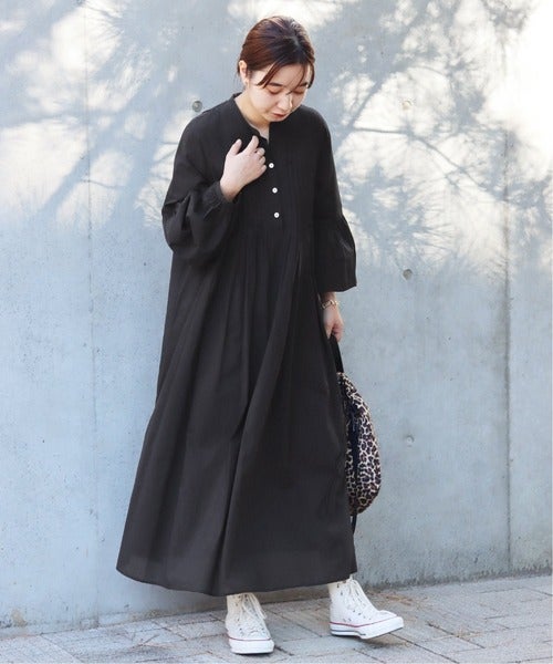 ワッシャー加工を施したこなれ感のあるハイネックワンピースは、軽い素材感で春の重ね着ファッションに大活躍してくれます。