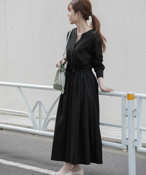 程よくハリのある素材感できちんと映えするロング丈のシャツワンピース。