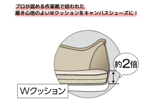 Wクッションキャンバスシューズは、かかとに履き心地がいいWクッションを採用。