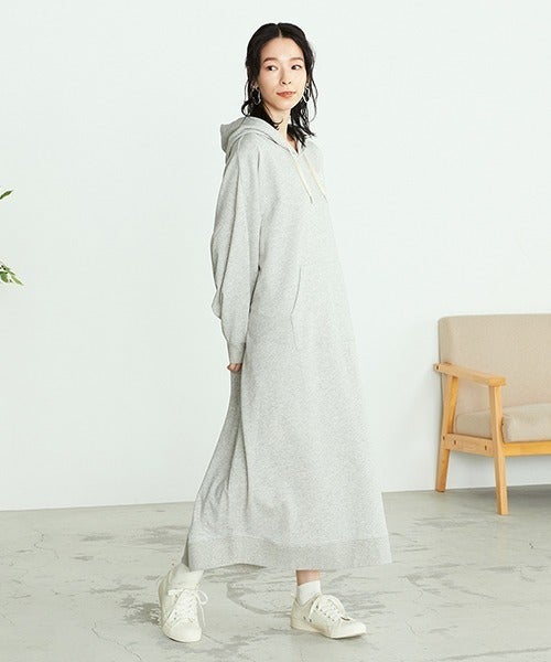 シンプルなパーカータイプのスウェットワンピースですが、他と差が付くこだわりが詰まった1枚。