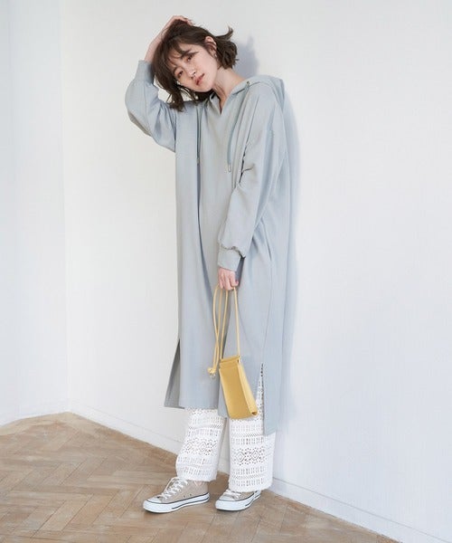 ゆったりとしたサイジングのスウェットワンピースは、春に人気のレイヤードコーデもお手の物。