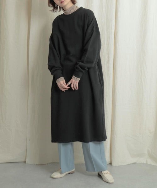 シンプルながら洗練されたストレートシルエットは、スウェットワンピースのゆるさをモードに寄せてくれます。