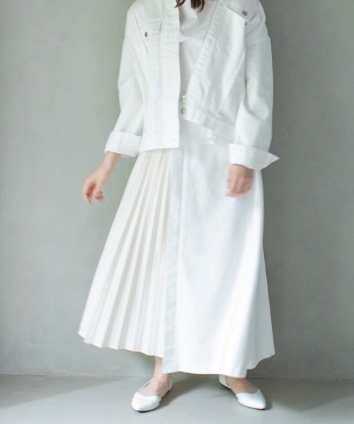 白デニムジャケット×白スカート