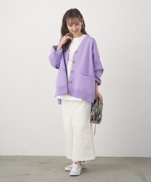 紫カーディガン×白スカート