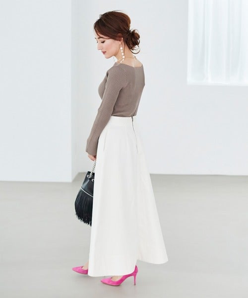 ニット×白スカートコーデ