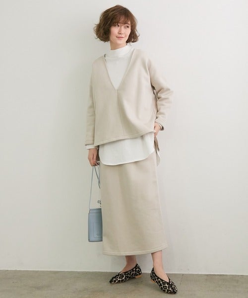 スカートがニット素材でも部屋着っぽく見えないのがいいですね。
