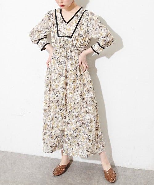 エスニック柄のワンピースでクラシックな雰囲気を作ったワンピースコーデ。