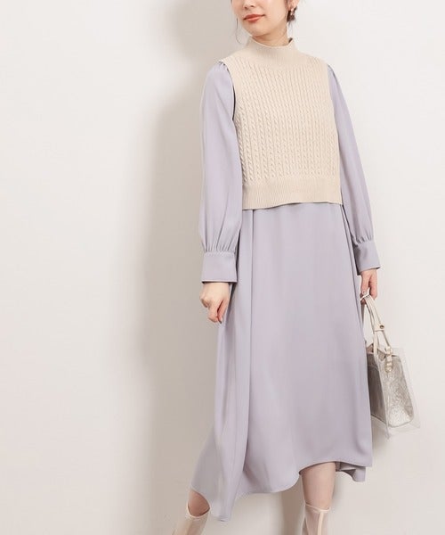 ワンピースとニットベストのセットアイテムは、おしゃれ初心者さんでも簡単にトレンドコーデを作れます。