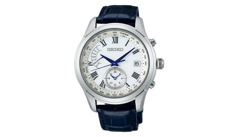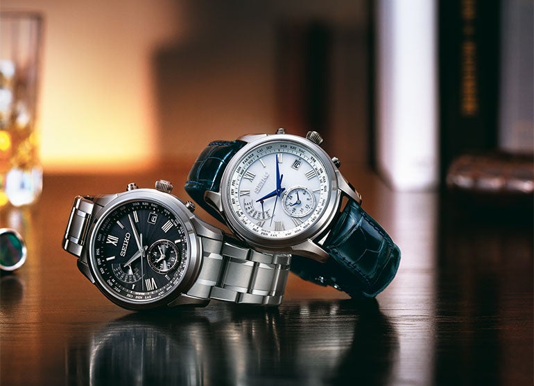 セイコーのブライツは、日本・中国・アメリカ・ドイツ・イギリスの標準電波を受信する機能付きで、グローバルに活躍するビジネスパーソンにぴったりの電波ソーラー腕時計。ガラスにはセイコーのなかで、最も傷つき難いといわれる「ダイヤシールド」が施されている。