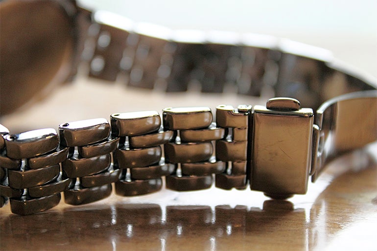 ケースと同様に最もポピュラーな素材はステンレススティール。サビや衝撃に強く、加工によっては高級感も出せるので、幅広い用途の腕時計に用いられている。短所は、重いことと、寒冷期には装着時にヒヤッとすること。使用するうちに小さな傷がついてくるが、ステンレス用のコンパウンドなどで手入れをすることができる。