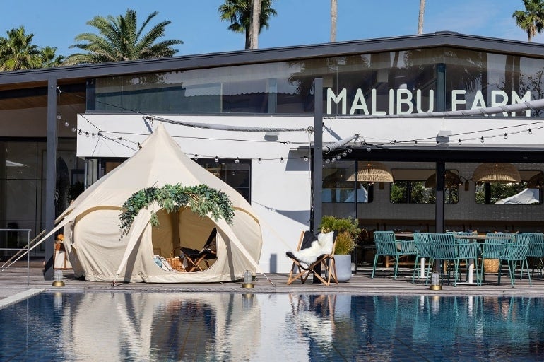L.A.のセレブに絶大な人気を誇るレストラン「MALIBU FARM」は、米L.A.マリブより2020年3月に日本初上陸。「リビエラ逗子マリーナ」内に開業した。目の前に広がるウォーターガーデンと800本のヤシ並木、そして高級なクルーザー・ヨットが停泊するマリーナ越しに海を眺める海外リゾートを彷彿とさせる非日常のロケーションに加えて、”密”のないオープンエアな空間に安心して食事を楽しめると支持を集め、今では予約が取れないレストランとして知られるほどの人気レストランになっている。