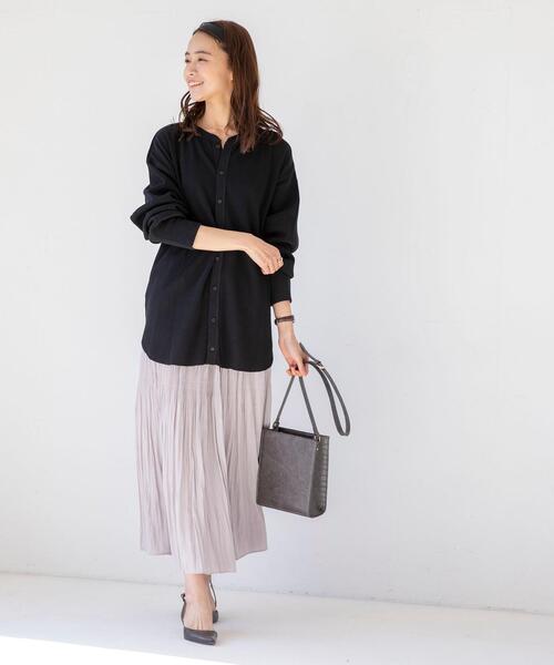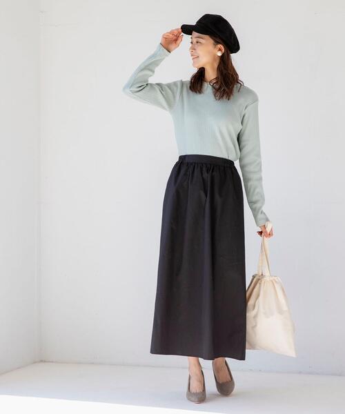 あえてトップスをウエストインせずゆったりと着たスカートコーデは、大人可愛い雰囲気があります。