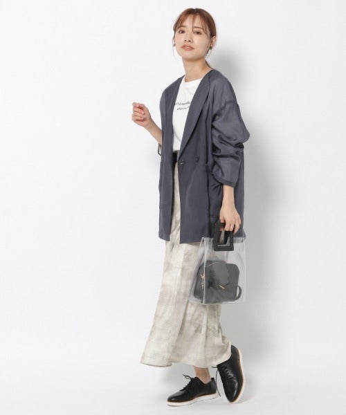 テーラードジャケットを肩掛けしていることで、春に合う軽やかな着こなしになっています。