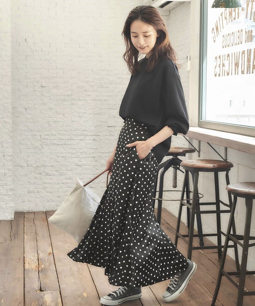 大人ならではのドット柄スカートコーデに仕上がっています。