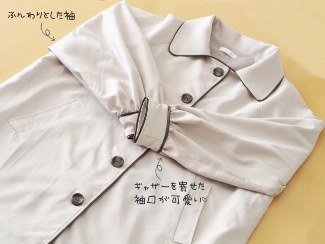 ふんわりとした袖とギャザーを寄せた袖口は可愛い印象で、カジュアルからキレイめまで幅広く活用できます。