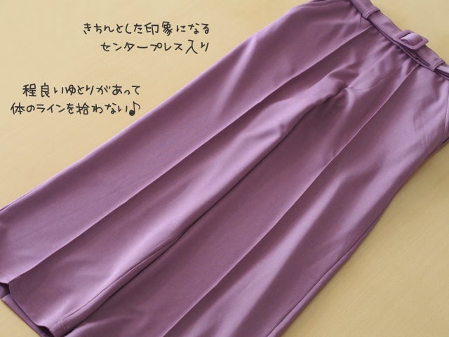 きちんと感を演出できるセンタープレス入り。適度なゆとりがあって、体のラインをあまり拾わないのも嬉しいポイント。
