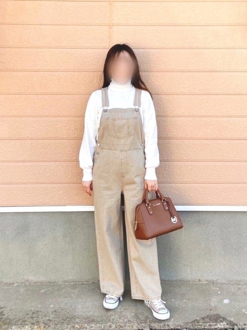 今年は大人女性からも人気のサロペット。ベージュのサロペットなら、落ち着いて見えるから子供っぽさを感じさせません。