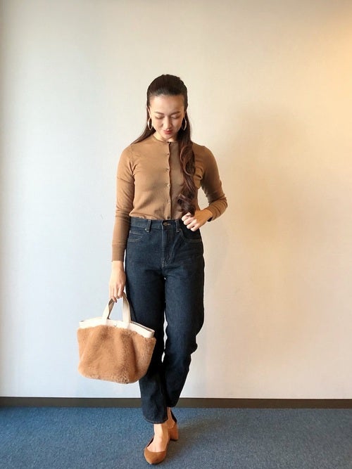 ユニクロのカーディガンはコンパクトなサイズ感で、きれいめな印象です。