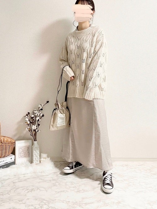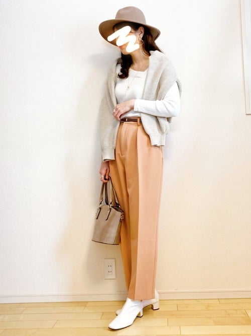 淡色でまとめたコーディネートだと、よりほんのりとした甘さが感じられて可愛げのある着こなしになります。