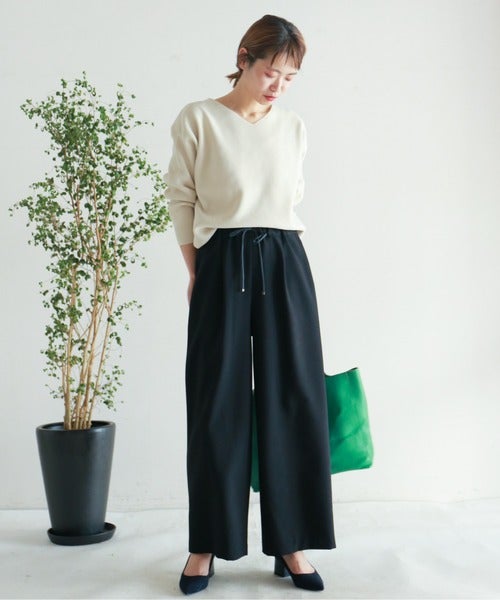 黒ワイドパンツは、リラックス感あるイージー型を選ぶと、よりこなれたコーデが楽しめますよ。