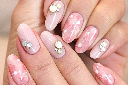 水彩画ネイルもミルキーピンクにすると