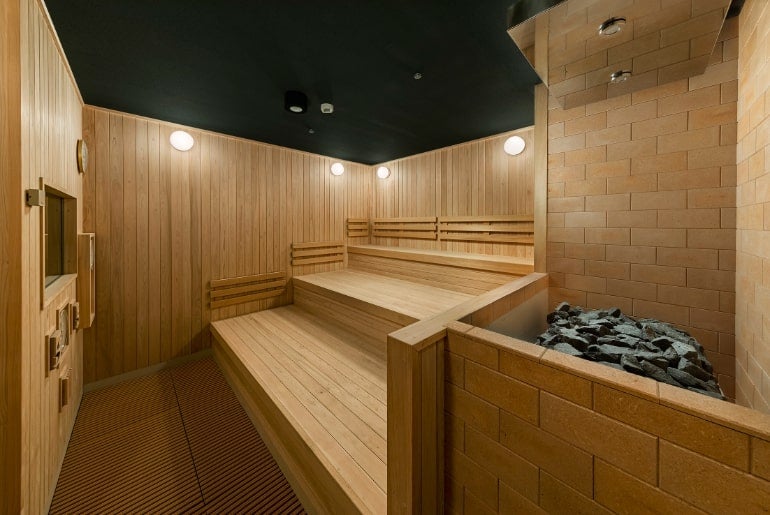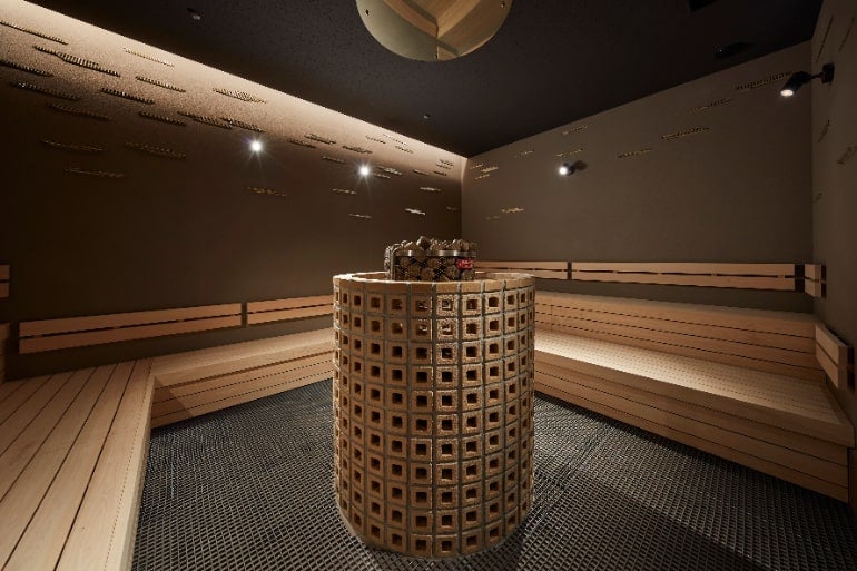 3段のサウナは通常より高低差があるため、上段と下段で15℃近く温度差がある。上級サウナーは90~95℃近い上段で、サウナ初心者は75~80℃の下段を利用するのがおすすめ。