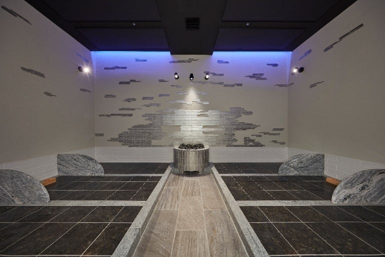 ロウリュにはアロマ水を使用。部屋全体に漂うアロマの香りで、癒されながらも快適なサウナ体験ができる。ラベンダーやローズミントなど、アロマの香りは日替わりとなっている。